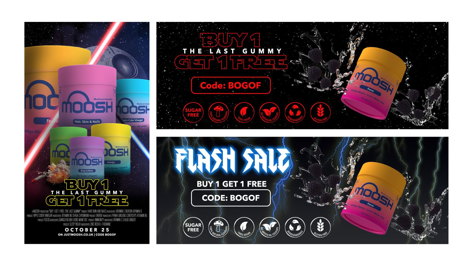 I worked with a functional mushroom gummy brand to create a range of branded visual assets, including static and motion graphics for Instagram and web banners. The focus was on delivering engaging, on-brand content that supported their digital marketing efforts and maintained visual consistency across platforms.